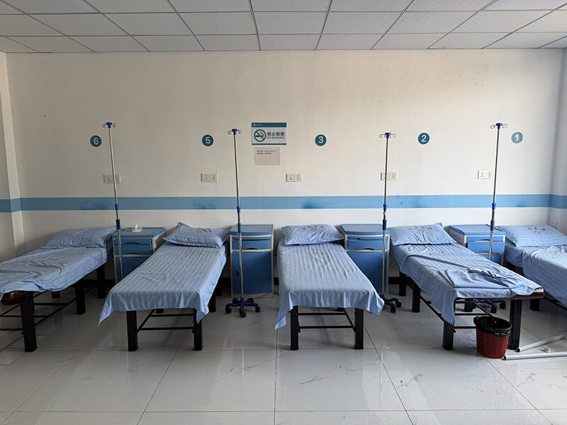 โดยภายในโรงพยาบาลมีทั้งห้องจ่ายยา, ห้องปรึกษาแพทย์, ห้องเอ็กซเรย์ รวมไปถึงห้องผ่าตัด โดยมีอุปกรณ์ครบครัน โดยส่วนใหญ่คาดว่า โรงพยาบาลแห่งนี้ใช้รักษาเฉพาะชาวจีนเท่านั้น เนื่องจากภาษาภายในโรงพยาบาลมีแต่ภาษาจีน รวมถึงแพทย์ที่มาประจำการก็เป็นชาวจีน
