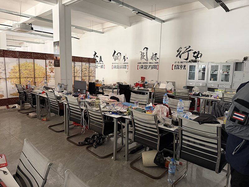 โดยเข้าไปสำรวจพื้นที่โซน E ซึ่งถือเป็นพื้นที่ที่ใช้สำหรับการหลอกลวงนานาชาติ อาทิ สหรัฐอเมริกา, อินเดีย, เวียดนาม หรือยุโรป เป็นต้น โดยภายในอาคารจะมีการติดแผ่นป้ายระบุเวลาการทำงาน ซึ่งส่วนใหญ่จะเริ่มงานในเวลา 21.00 น. - 03.00 น. เนื่องจากเหยื่อส่วนใหญ่ที่ถูกหลอกลวง จะอยู่ฝั่งทวีปยุโรป และอเมริกา