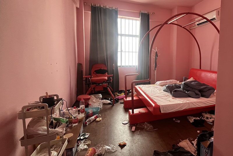 นอกจากนี้ยังได้ไปดูห้องคุมขัง ของสแกมเมอร์ที่ไม่สามารถทำยอดให้เข้าเป้าได้ ต้องถูกนำตัวมาคุมขัง ซึ่งอยู่ชั้นใต้ดินของอาคารแห่งหนึ่ง ในพื้นที่โซน E มีจำนวน 12 ห้อง พบว่าภายในห้องจะมีอุปกรณ์ทรมาน และมีความคับแคบ ไม่มีสิ่งอำนวยความสะดวก มีเพียงขวดน้ำเล็กๆ ที่เอาไว้สำหรับปัสสาวะ พร้อมกับมีการติดกล้องวงจรปิด เพื่อติดตามพฤติกรรมความเคลื่อนไหวตลอดเวลาอยู่ภายในห้อง