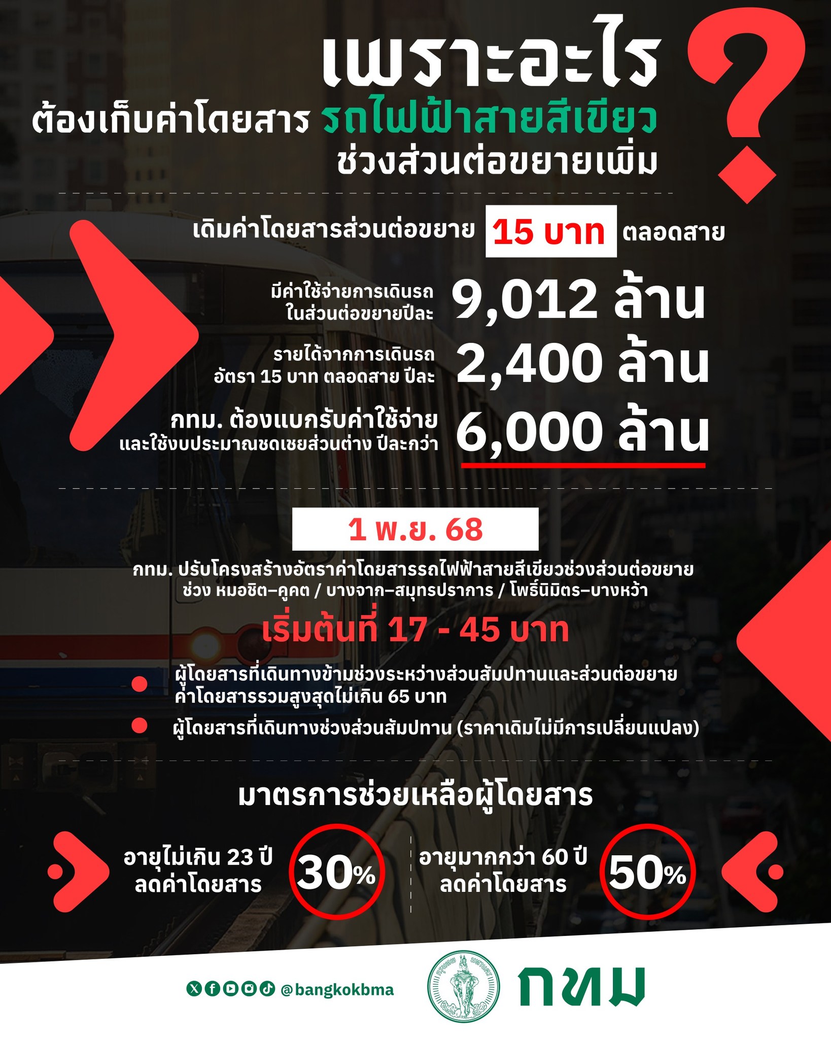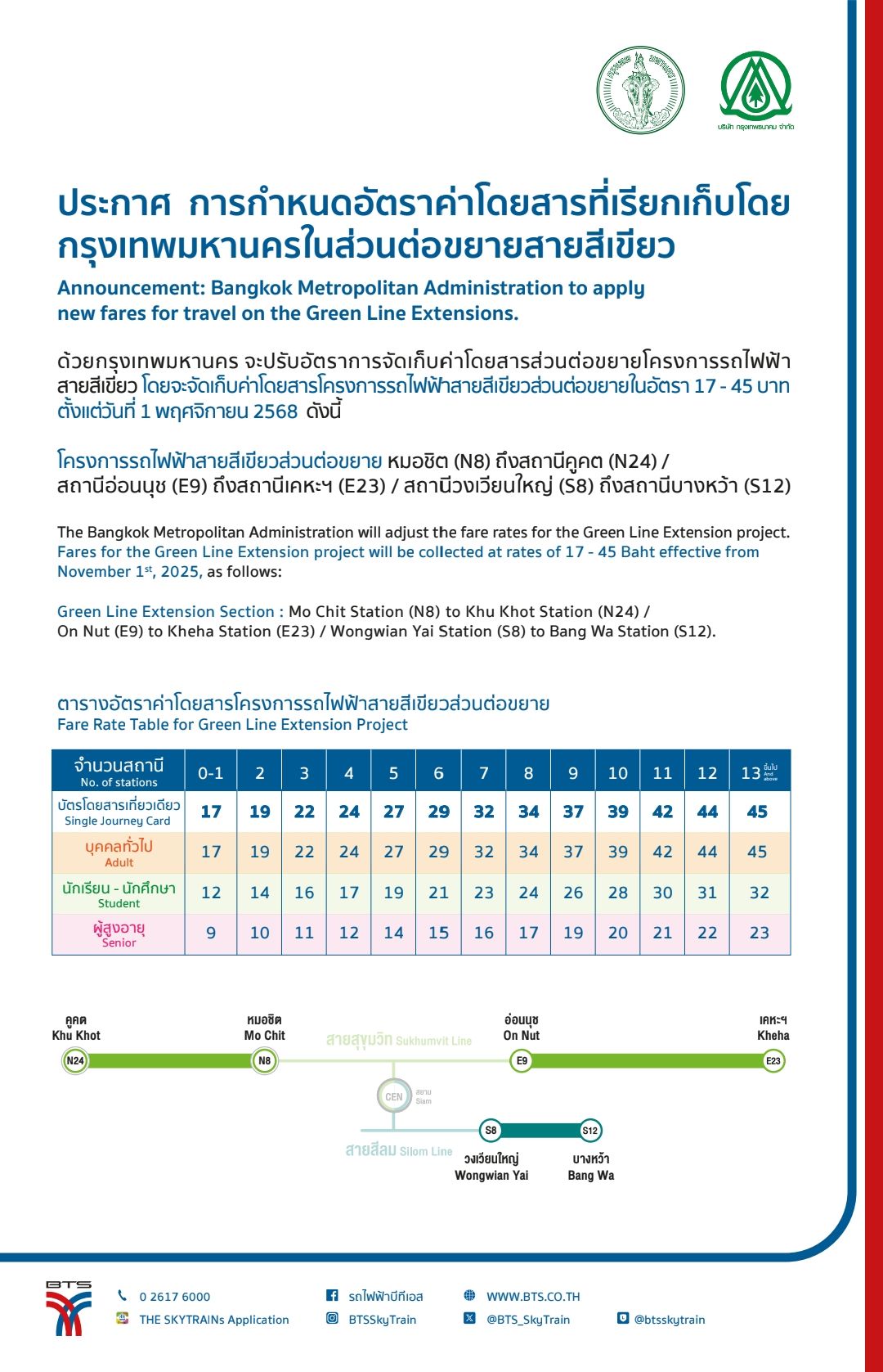 อ่านข่าวต้นฉบับได้ที่ : เปิดค่าโดยสารใหม่ สายสีเขียว ส่วนต่อขยาย เริ่ม 1 พ.ย. 2568