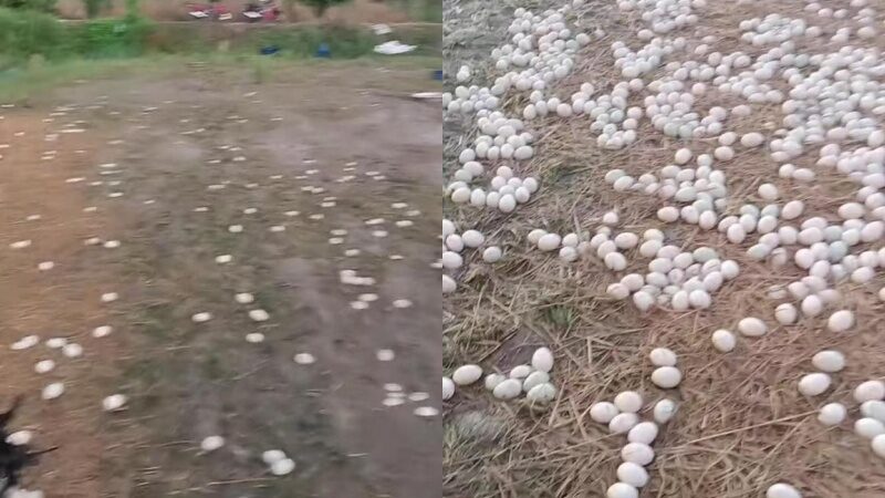 "ตอนนี้ผมรู้เหตุผลแล้ว บ้านเกิดของภรรยาอยู่ไกล และตอนนี้ผมก็วางแผนว่าจะอยู่สักสองสามวัน และเหตุผลที่ภรรยาไม่เคยแตะต้องไข่ก็เพราะเธอต้องเก็บไข่จำนวนมากทุกเช้า ทำให้เบื่อทั้งปี" พร้อมแนบภาพลานดินกว้างที่เต็มไปด้วยไข่วางเกลื่อนเต็มพื้นแทบไม่มีที่ว่าง