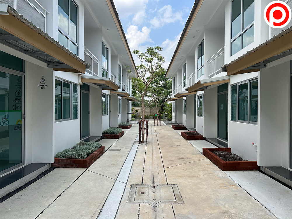 สังเกตว่าทางเดินนี้มีการปลูกต้นไม้ไว้ตรงกลาง และมีกระบะปลูกต้นไม้หน้าบ้านทุกหลัง ซึ่งถือเป็นส่วนกลางเช่นกัน โดยนิติบุคคลจะสนับสนุนการปลูกพืชผักสวนครัว เพื่อให้ลูกบ้านสามารถใช้สอยประโยชน์ร่วมกัน เก็บพืชผักไปทำอาหารได้