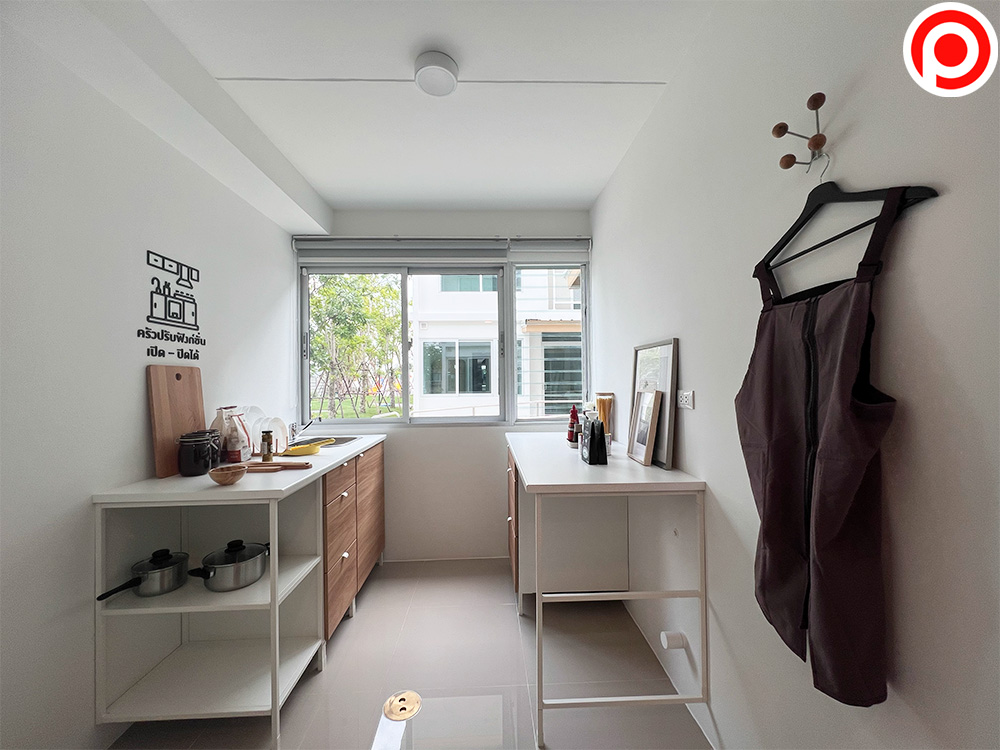 ห้องครัวจะอยู่ฝั่งหน้าบ้าน ติดทางเดินด้านนอก[/caption]