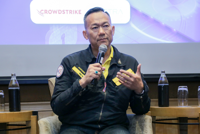 นายจักรพันธ์ ตุลยสิทธิ์เสรี วิศวกรฝ่ายขายอาวุโสประจำภูมิ ภาค บริษัท เคราด์ สไตร์ท อินคอร์พอเรชั่น จำกัด มองว่า เทคโนโลยี AI และ ML (Machine Learning) ไม่ได้มาแทนการทำงานของคนแต่ มาช่วยให้คนทำงานได้เร็วขึ้น มีประสิทธิภาพมากขึ้น ซึ่งจากสถิติการขโมยข้อมูล ผู้ใช้งานสิทธิสูงในองค์กร (privileged accounts) จากแฮกเกอร์แล้วนำไปขายต่อ มีจำนวนเพิ่มขึ้นจากปีที่แล้ วถึง 20% โดยทางฝั่งแฮกเกอร์เองก็มี การใช้ เทคโนโลยีที่ทันสมัย เช่น Generative AI การติดตั้งระบบป้องกันการดักฟั ง (Voice Scrambler) ใช้ AI เลียนแบบพฤติกรรมหรือเสียงของคน (Deepfake) เป็นต้น ซึ่งแฮกเกอร์ยังมีการเจาะไปที่ องค์กรเทคโนโลยีต่างๆ เพื่อโจมตีไปยัง Supplier ขนาดกลางและเล็กที่มีการเชื่ อมระบบกับองค์กรขนาดใหญ่ (Supply Chain Attack) องค์กรจึงจำเป็นต้องใช้ AI เพื่อความรวดเร็วและแม่ นยำในหลากหลายมุม ทั้งการป้องกันช่องโหว่ จัดลำดับการจัดการปัญหา ตรวจสอบข้อมูลที่รั่ วไหลในเวปมืด การคาดการณ์ในการเข้ ามาตรวจสอบและหยุดการโจมตี ซึ่งยังต้องการคนที่เป็นผู้เชี่ยวชาญเพื่อเทรน AI ในการแก้ปัญหาต่างๆ รวมถึงต้ องการคนในการแยกแยะและตัดสิ นใจบนปัญหาต่างๆ เพื่อจัดการกับปัญหาโดยไม่ กระทบต่อธุรกิจ