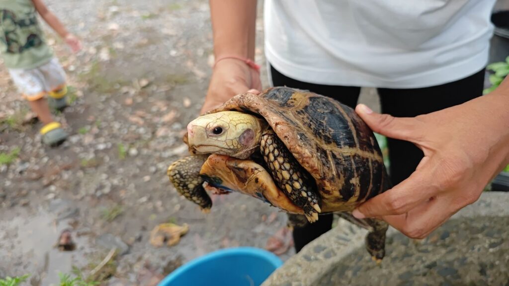 น.ส.วันดีกล่าวว่า เจอเจ้าเต่าตัวนี้ช่วงเช้าวันที่ 1 พฤษภาคมที่ผ่านมา โดยเต่าได้คลานมายังหน้าบ้านของตน ก็เลยไปดูและได้เห็นว่ากระดองเต่ามีรอยร้าวเลยนึกสงสาร เก็บมาเลี้ยงไว้ในท่อซีเมนต์หน้าบ้าน ต้องการอนุบาลดูแลรักษาสักพัก ตนก็นำผักบุ้ง ผักต่างๆ ที่เต่ากินได้มาให้กินก่อน แล้วก็นำยาสมุนไพรพื้นบ้านมาทาบนกระดองเต่าให้เล็กน้อย เพื่อให้อาการดีขึ้น ถ้าอาการดีขึ้นก็จะนำไปปล่อย ยอมรับว่าไม่เคยเห็นเต่าแบบนี้ เห็นครั้งแรกก็รู้สึกว่าแปลกดี มีหัวสีทองแล้วก็จมูกออกเป็นสีชมพู