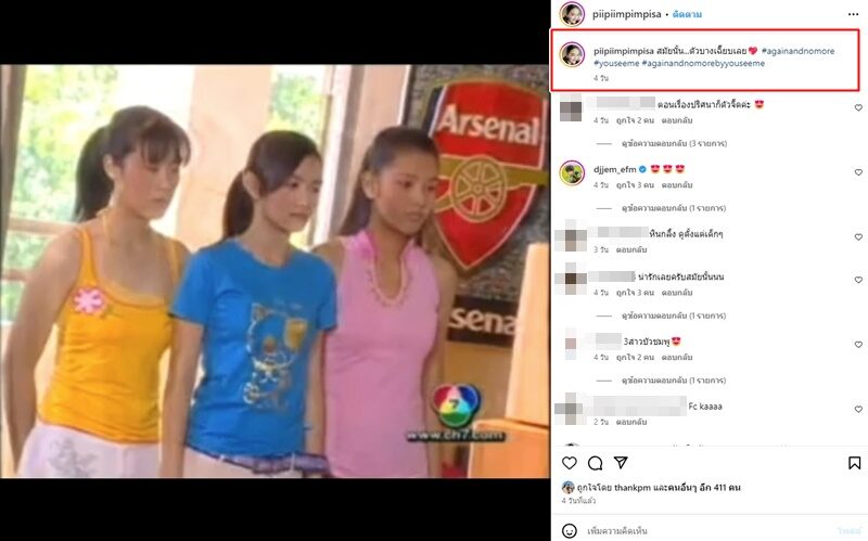 “สมัยนั้น…ตัวบางเฉี๊ยบเลย #againandnomore #youseeme #againandnomorebyyouseeme” โดยมีทั้งคนบันเทิงและแฟนๆเข้ามาคอมเมนต์ติดตามเรื่องนี้มาตั้งแต่เด็ก อาทิ