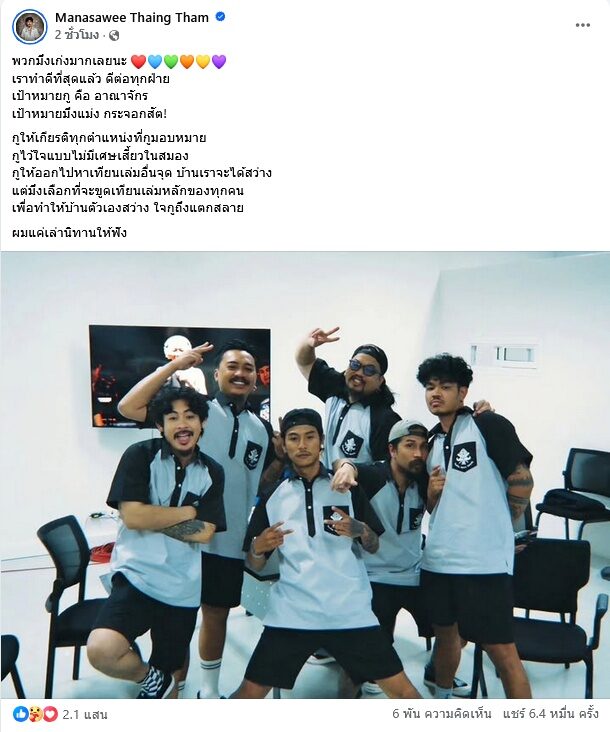 โดย อาร์ม มนัสวี โพสต์ข้อความกับเพื่อนยูทูบเบอร์ OHANA ที่เหลือรวม 6 คน หลังจากไม่มี เดอะมีน พงศธร แล้วว่า