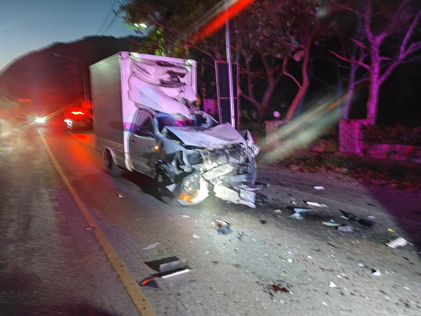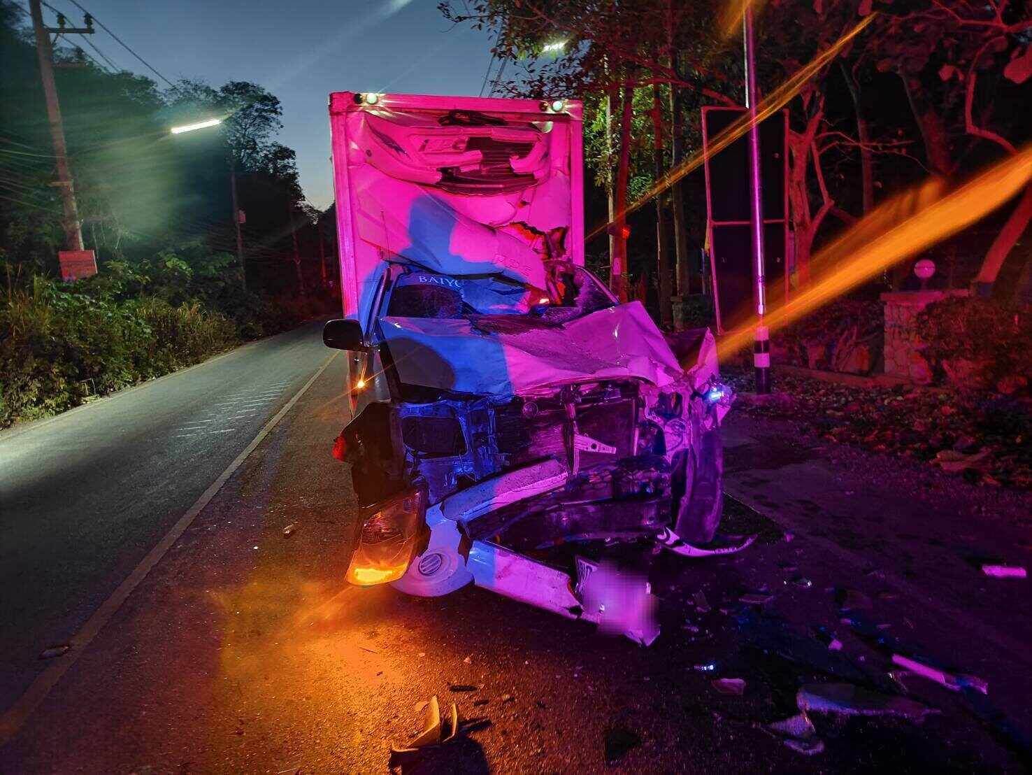 ช้างป่าเขาใหญ่ เดินข้ามถนน ถูกรถตู้ทึบพุ่งชน! คนขับบาดเจ็บสาหัส ช้างหนีเข้าป่า