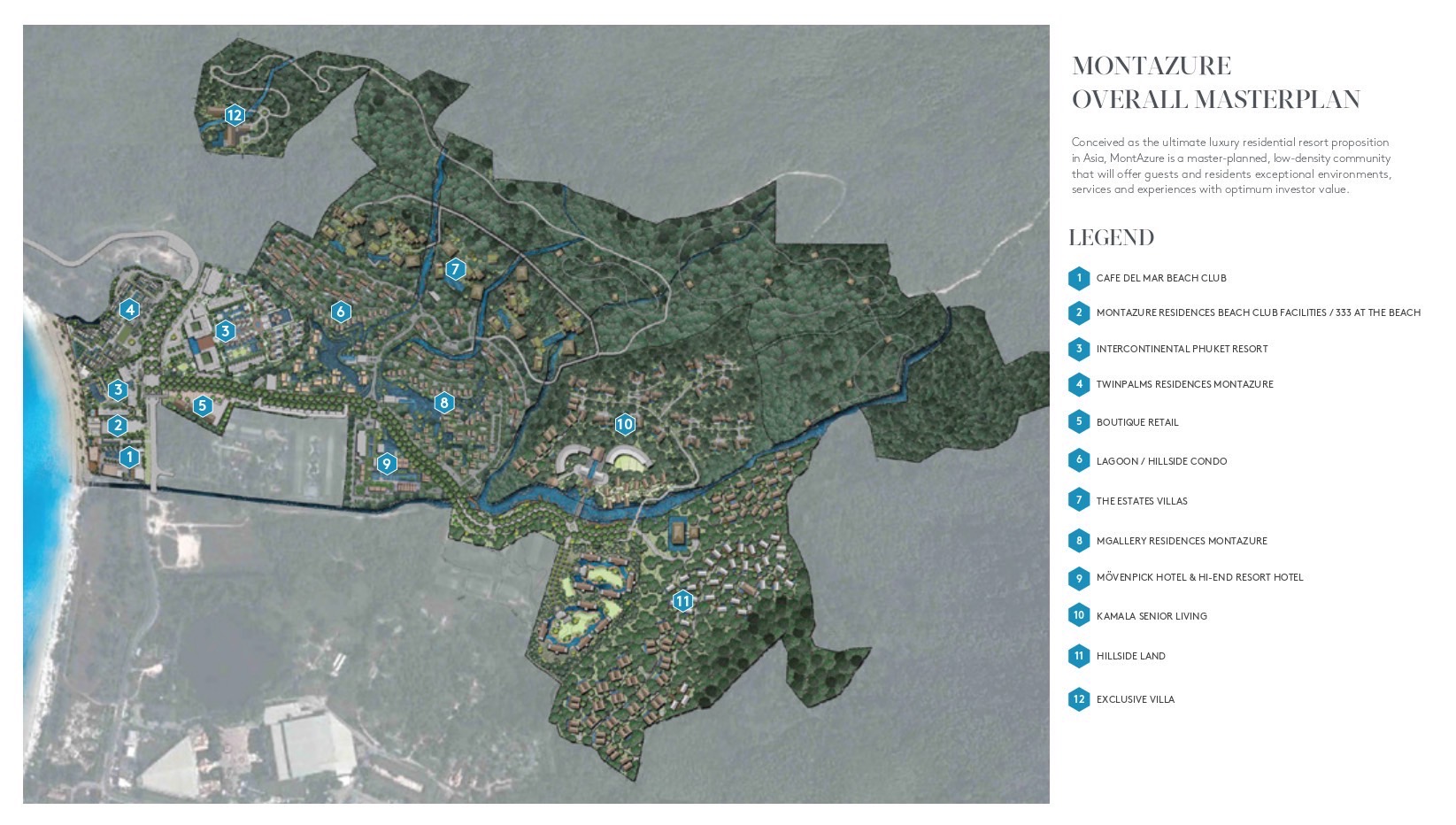 ที่ดิน 454 ไร่บนหาดกมลา จ.ภูเก็ต เป็นที่ตั้งของ“มอนท์เอซัวร์” โครงการมิกซ์ยูสขนาดใหญ่ที่สุดบนเกาะภูเก็ต จากการร่วมทุน 3 สัญชาติ ที่ดินนี้ถูกแบ่งแปลงพัฒนาเป็นทั้งคอนโดฯ โรงแรม ร้านอาหาร บีชคลับ และล่าสุดจะเปิด“วิลล่า” ระดับซูเปอร์ไฮเอนด์ ดึงเม็ดเงินผู้ซื้อเศรษฐีจากทั่วโลก
