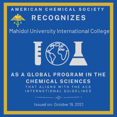 วิทยาลัยนานาชาติ มหาวิทยาลัยมหิดล (MUIC) ตอกย้ำความเป็นผู้นำด้านการศึกษาวิทยาศาสตร์ ด้วยหลักสูตรเคมีที่ได้รับการรับรองจากสมาคมเคมีแห่งสหรัฐอเมริกา (American Chemical Society - ACS) เป็นแห่งแรกและแห่งเดียวในประเทศไทย