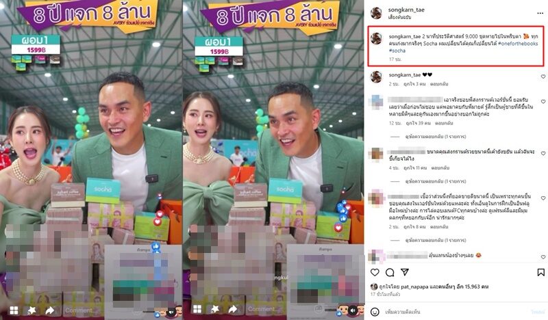 อินฟลูฯป้ายแดง พ่อค้ามาแรงนาทีนี้แล้ว สงกรานต์ เตชะณรงค์ โพสต์คลิป(ชมคลิป) “2 นาทีประวัติศาสตร์ 9,000 ชุดหายไปในพริบตา ทุกคนเก่งมากจริงๆ Socha ผมเปลี่ยนได้คุณก็เปลี่ยนได้ #oneforthebooks #socha”