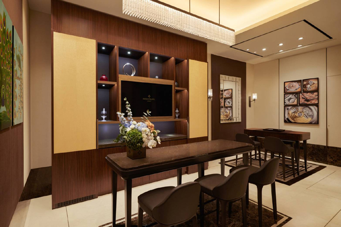 แขกผู้มาเยือนสามารถชมนาฬิกา ปาเต็ก ฟิลิปป์ รุ่นต่าง ๆ ที่แสดงอยู่ภายใต้ตู้จัดแสดงของบูติก หรือสามารถผ่อนคลายไปกับหลากหลายพื้นที่ซึ่งรังสรรค์ขึ้นผ่านการออกแบบเพื่อให้บรรจบกับความต้องการอันแตกต่างนับตั้งแต่พื้นที่ส่วนตัวตลอดจนถึงบรรยากาศสไตล์แคชวลอันแสนอบอุ่น ขณะที่ฉากกั้นต่าง ๆ ผ่านการตกแต่งด้วยเลเซอร์คัต ถ่ายทอดลวดลายสัญลักษณ์ คาลาทราวา ครอส ของแบรนด์พร้อมสำหรับมอบความเป็นส่วนตัวสำหรับการพูดคุยของลูกค้า และท้ายสุด ห้องวีไอพีที่ตั้งอยู่ ณ ด้านหลังของบูติกเพื่อนำเสนอความเป็นส่วนตัวอย่างแท้จริง สำหรับแขกผู้มาเยือนผู้ซึ่งปรารถนาจะได้ค้นพบและสัมผัสกับผลงานการสร้างสรรค์ของ ปาเต็ก ฟิลิปป์ ด้วยความเป็นส่วนตัวและไร้การรบกวนใด ๆ มุมห้องสมุดเล็ก ๆ ที่รายล้อมไปด้วยหนังสือซึ่งอุทิศให้กับเรื่องราวของการประดิษฐ์นาฬิกา และรวมไปถึงหนังสือแห่งเรื่องราวประวัติศาสตร์และเส้นทางการสร้างสรรค์ของปาเต็ก ฟิลิปป์ ที่ได้รับการคัดสรรมาอย่างพิถีพิถันสำหรับการชมและเพลิดเพลินไปกับหลากหลายเรื่องราวของเรือนเวลา
