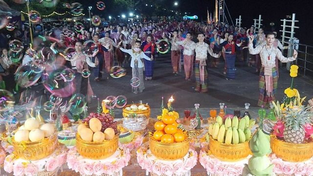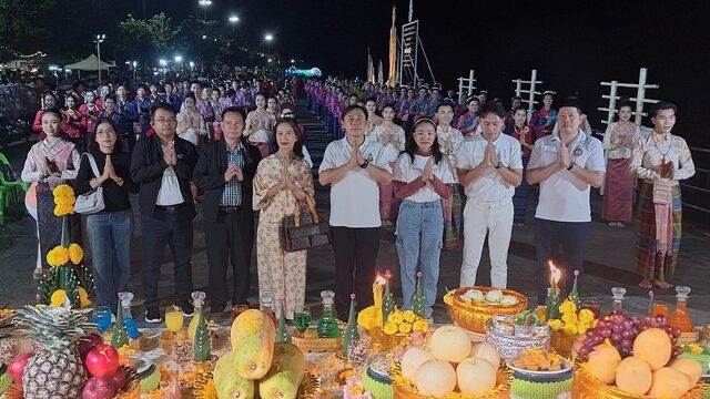 วันที่ 13 ธ.ค.2567 ผู้สื่อข่าวรายงานว่า เมื่อวันที่ 12 ธ.ค.ที่ผ่านมา ที่แลนด์มาร์คพญานาค ริมฝั่งแม่น้ำโขง จ.นครพนม คณะเจ้าภาพเจ้าศรัทธา 8-9 ชีวิตจากกรุงเทพฯ มาตั้งโต๊ะบวงสรวงพญาศรีสัตตนาคราช หรือ พ่อปู่พญานาค ครั้งที่ 5