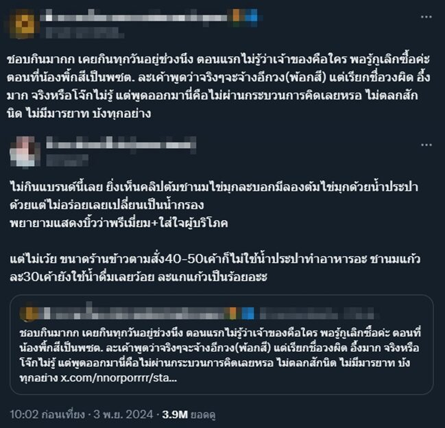 จากนั้นก็มีชาวเน็ตเข้ามาพูดถึง ชานมไข่มุก BEARHOUSE บอกว่า "ไม่กินแบรนด์นี้เลย ยิ่งเห็นคลิปต้มชานมไข่มุกละบอกมีลองต้มไข่มุกด้วยน้ำประปาด้วยแต่ไม่อร่อยเลยเปลี่ยนเป็นน้ำกรอง พยายามแสดงบิ้วว่าพรีเมี่ยม+ใส่ใจผู้บริโภค