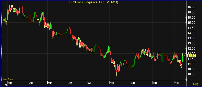 ผู้สื่อข่าวรายงานว่า วันนี้ (13 พ.ย.67) ราคาหุ้น บริษัท เอสซีจี เจดับเบิ้ลยูดี โลจิสติกส์ จำกัด (มหาชน) หรือ SJWD ณ เวลา 10:59 น. อยู่ที่ระดับ 11.80 บาท บวก 1.10 บาท หรือ 10.28% สูงสุดที่ระดับ 12.00 บาท ต่ำสุดที่ระดับ 11.20 บาท ด้วยมูลค่าการซื้อขาย 49.32 ล้านบาท