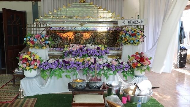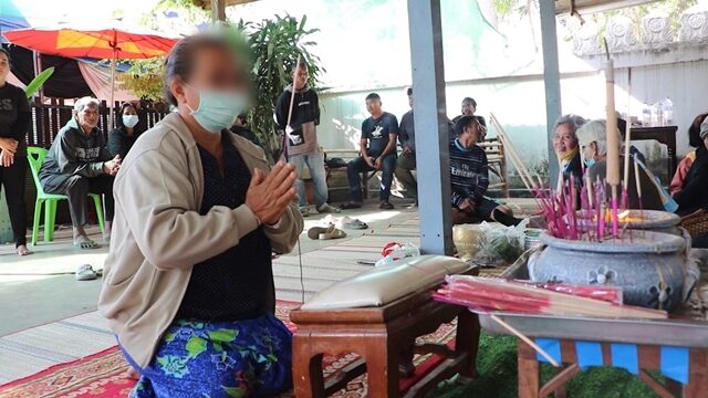 โดยที่บ้านของผู้ตาย ซึ่งเป็นสถานที่จัดงานศพ พบว่าบรรยากาศเป็นไปอย่างเศร้าสลด ครอบครัวญาติพี่น้องและเพื่อนบ้าน ต่างมาร่วมกันจัดเตรียมพื้นที่จัดงานฌาปนกิจจำนวนมาก