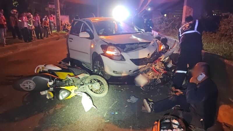 สาวขับเก๋ง ย้อนศร พุ่งชนจยย.2คัน เจ็บ3 เผย ขับเลยทางเข้าบ้านญาติ