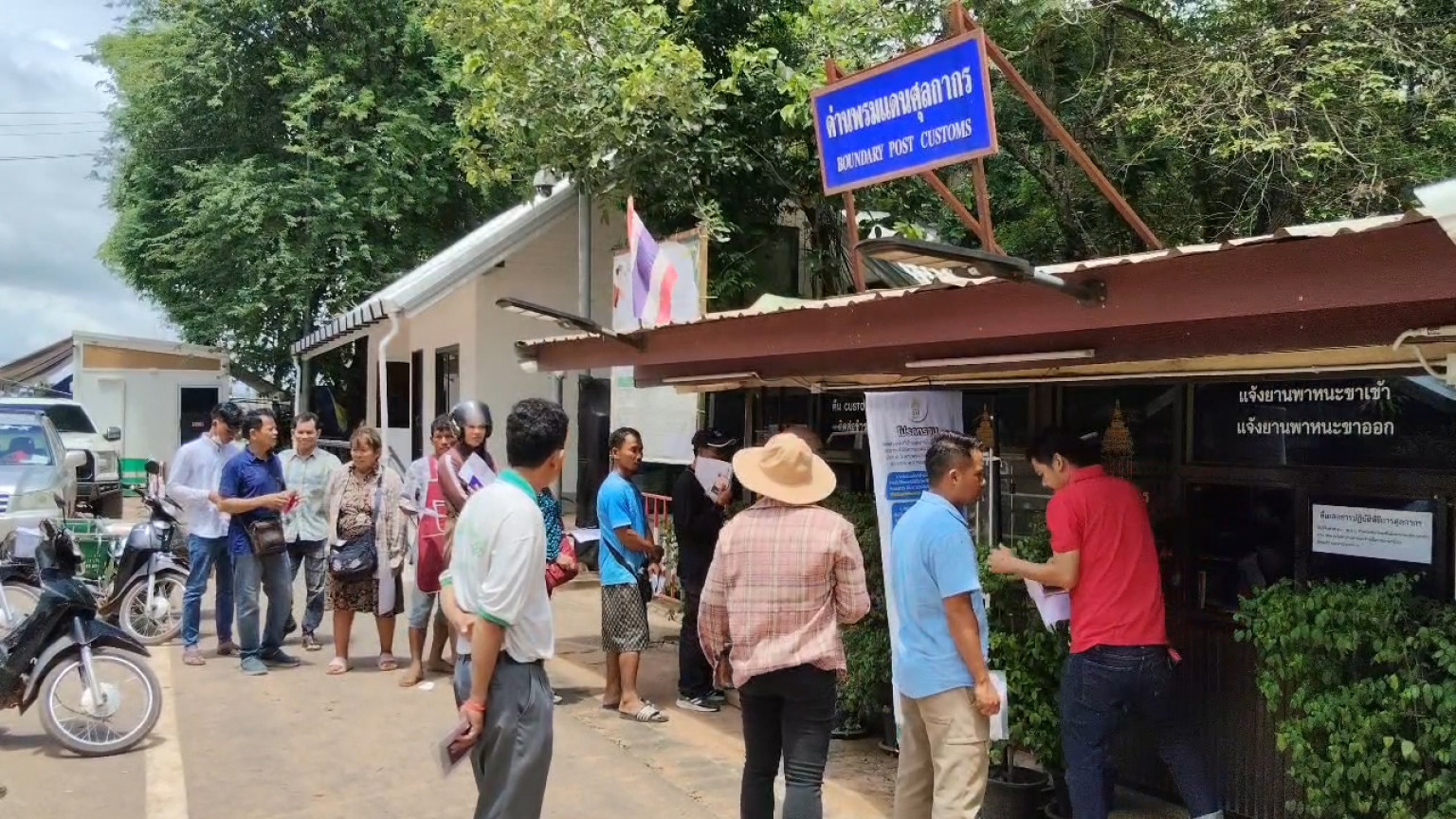 สุรินทร์ ด่านช่องจอม ผบก.ตม.4 ประชุมหน่วยงานชายแดนช่องจอม รับมือสถานการร์ตึงเครียด หลังกัมพูชาปิดด่านก่อนไทย ส่วนรถบรรทุกชะลอข้ามแดน