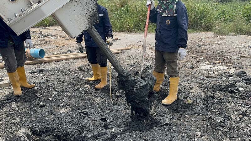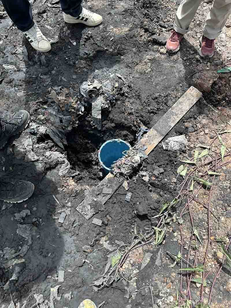 “เราเจาะไปแค่ 3 เมตร มันก็ไปต่อไม่ได้แล้ว ไปเจอถังเบ๊าท์ (ถังIBC ขนาด 1,000 ลิตร) ถุงบิ๊กแบ็ก พอเห็นแบบนี้เราก็เลยคิดว่า ตั้งแต่มีเรื่องในปี 2565 แสดงว่ามันไม่ได้มีการ clear ของออกไปเลย”