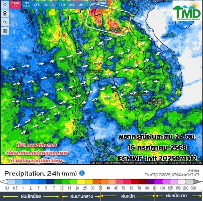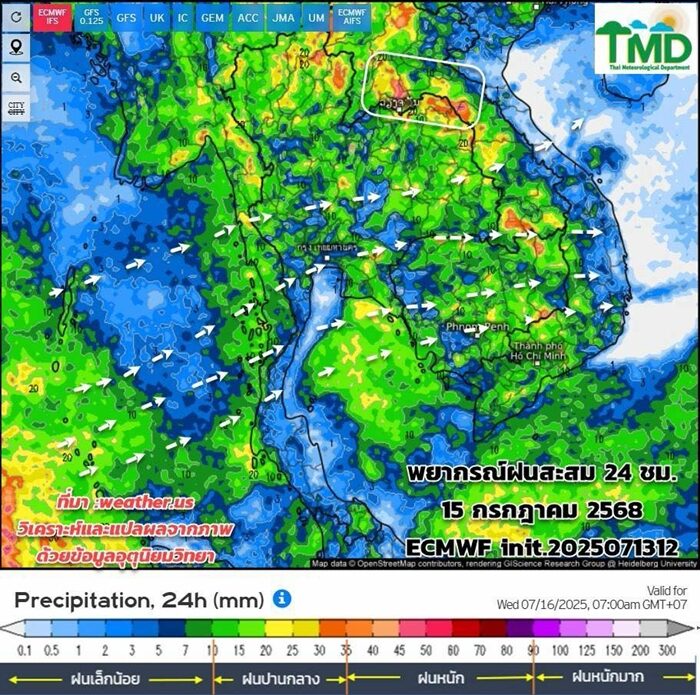 อ่านข่าวต้นฉบับได้ที่ : กรมอุตุฯ พยากรณ์ฝนสะสม 15 วันล่วงหน้า เตรียมรับมือ ฝนตกหนักมาก