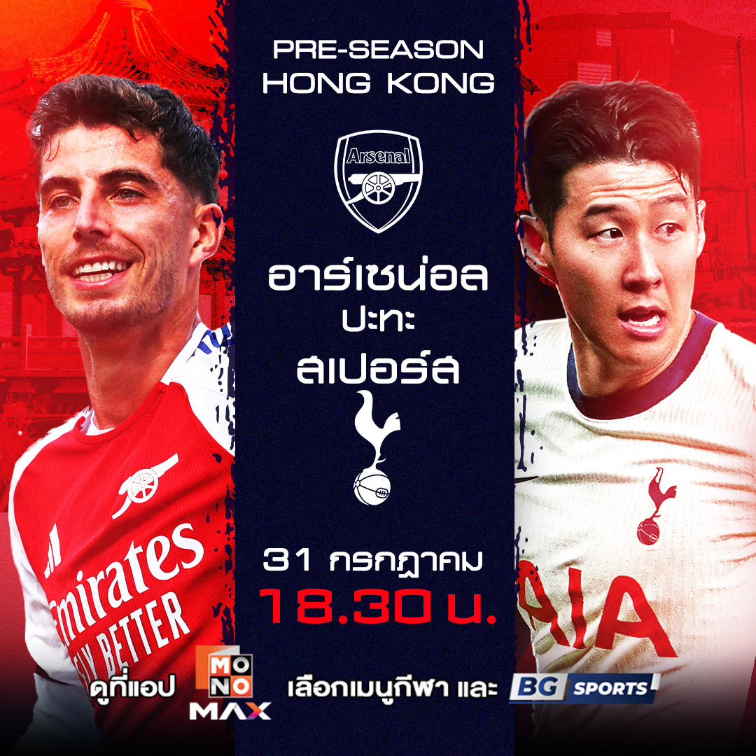 อาร์เซนอล vs. สเปอร์ส ในวันที่ 31 กรกฎาคม 2568 เวลา 18:30 น. ทาง Monomax