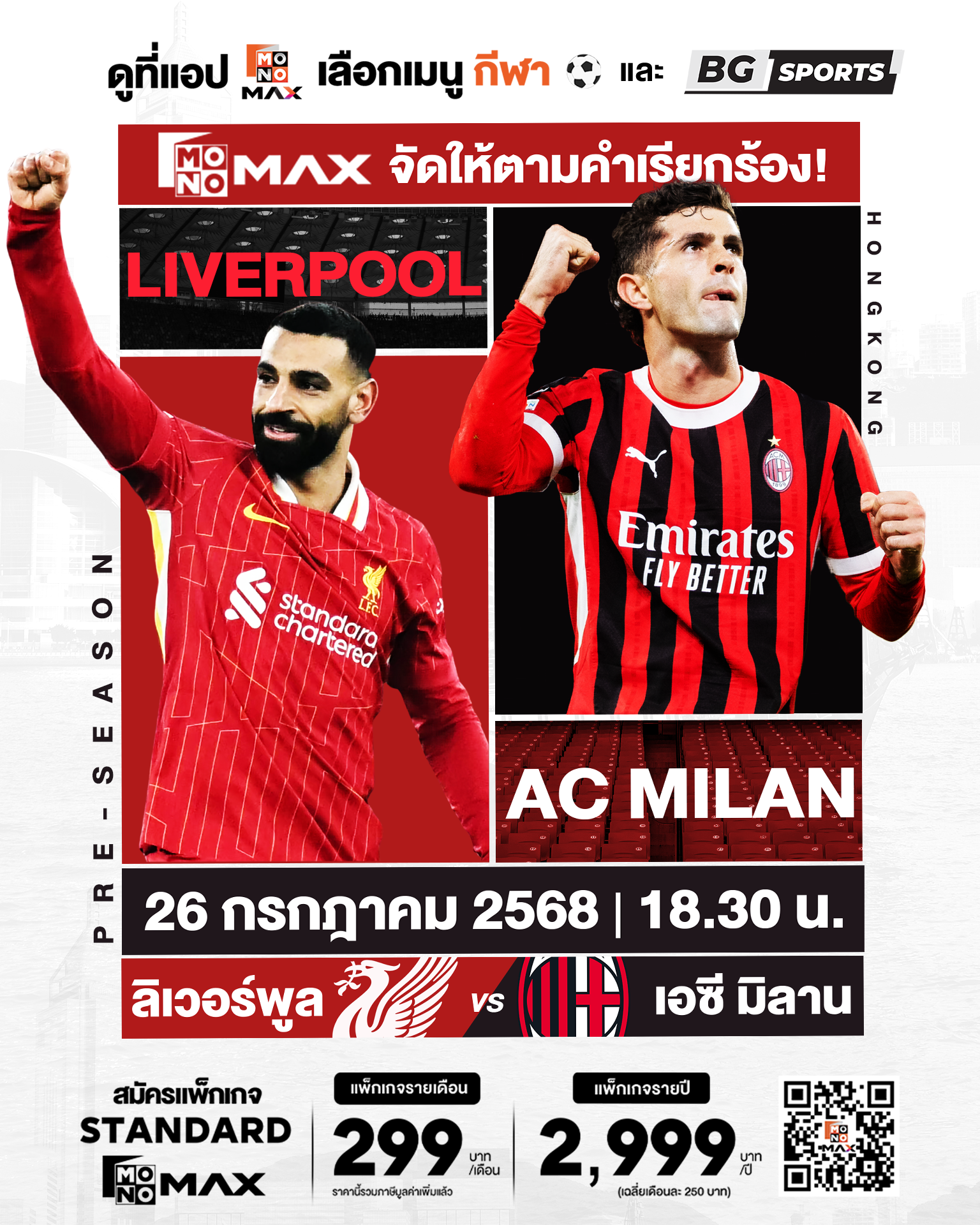 ลิเวอร์พูล vs. เอซี มิลาน ในวันที่ 26 กรกฎาคม 2568 เวลา 18:30 น. ทาง Monomax