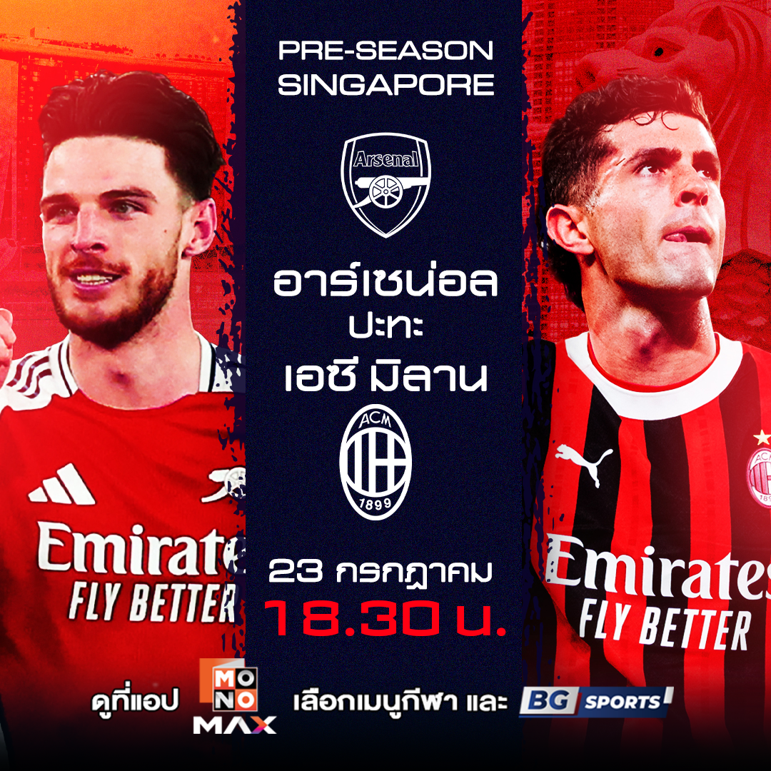อาร์เซนอล vs. เอซี มิลาน ในวันที่ 23 กรกฎาคม 2568 เวลา 18:30 น. ทาง Monomax