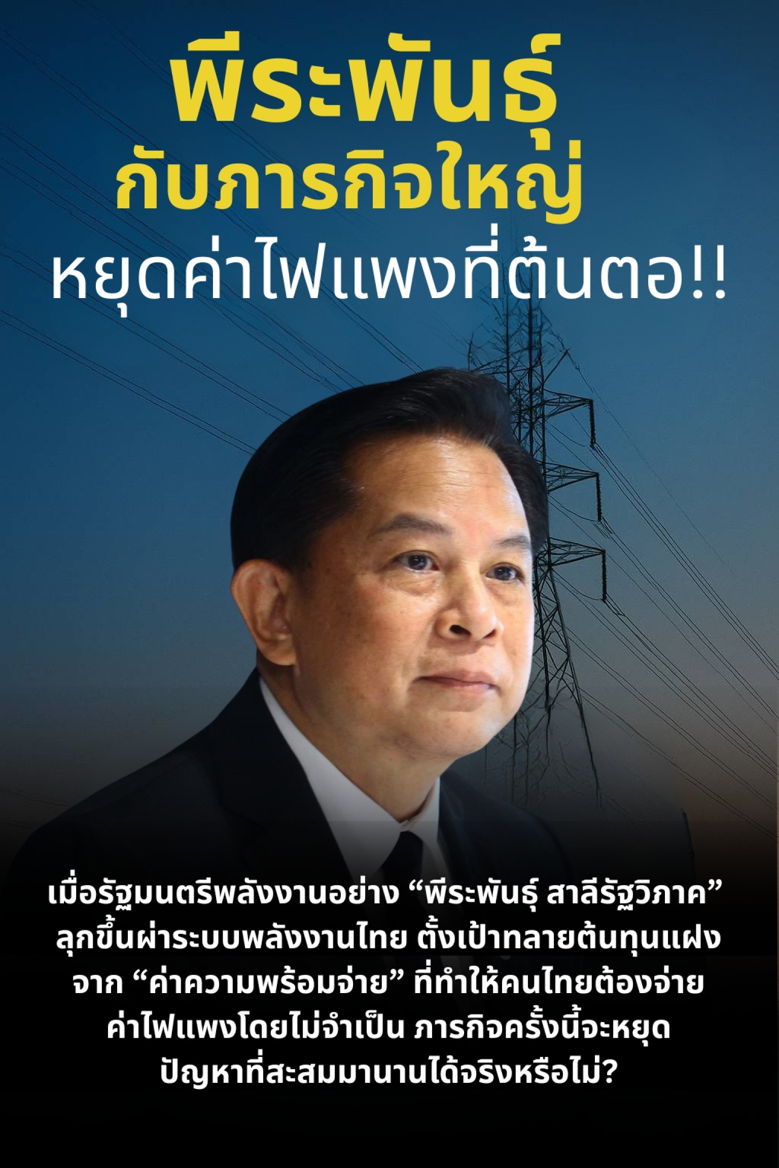 #พีระพันธุ์สาลีรัฐวิภาค#ค่าความพร้อมจ่าย#ค่าไฟแพง#ผ่าระบบพลังงาน#พลังงานไทย2568#กระทรวงพลังงาน #หยุดค่าไฟแพง#ปฏิรูปพลังงาน#โรงไฟฟ้าสำรอง#ไฟฟ้าเพื่อประชาชน
