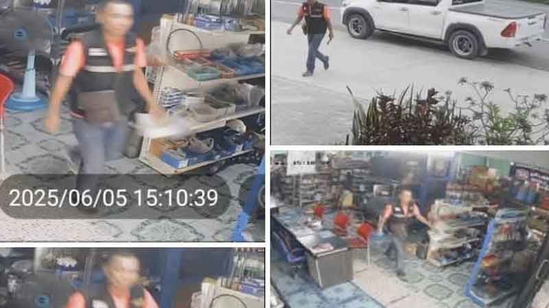 ร่วมกันระวัง ร่วมกันสอดส่อง เพื่อไม่ให้ตกเป็นเหยื่อของกลโกงมิจฉาชีพ ” พร้อมกับรูปภาพและคลิปวิดีโอจากกล้องวงจรปิดของผู้ก่อเหตุขับขี่รถรถกระบะโตโยต้าสีขาว 4 ประตูมาจอดบริเวณหน้าร้านค้าแห่งหนึ่ง จากนั้นได้มีชายลักษณะผมสั้นผอมสูงสวมเสื้อกั๊กสีดำดำเดินถือสมุดเข้ามาในร้านก่อนจะรีบเดินออกจากร้านอย่างท่าทีเร่งรีบ