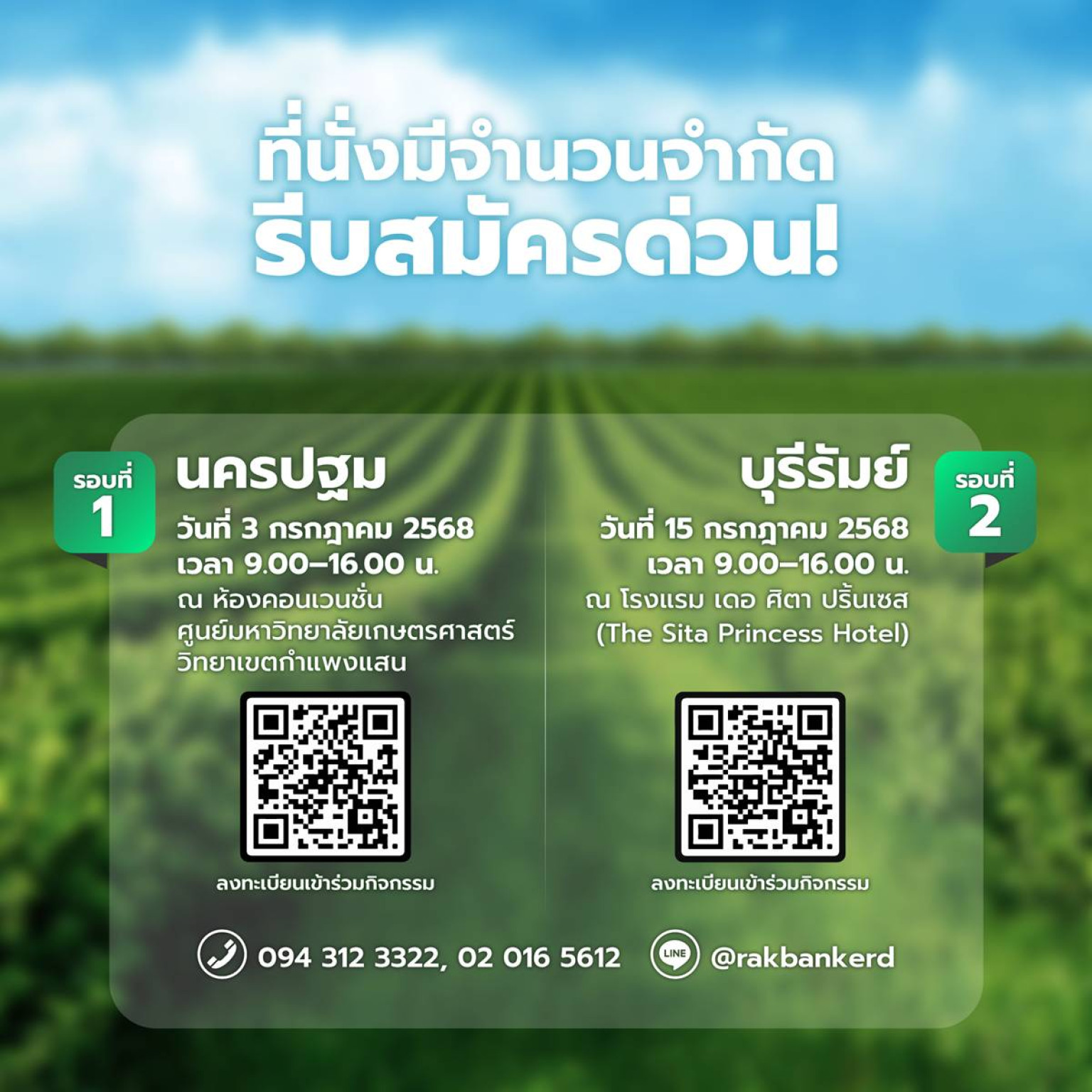 ครั้งที่ 2: วันอังคารที่ 15 กรกฎาคม 2568 เวลา 09.00 - 16.00 น. ณ โรงแรม The Sita Princess จังหวัดบุรีรัมย์