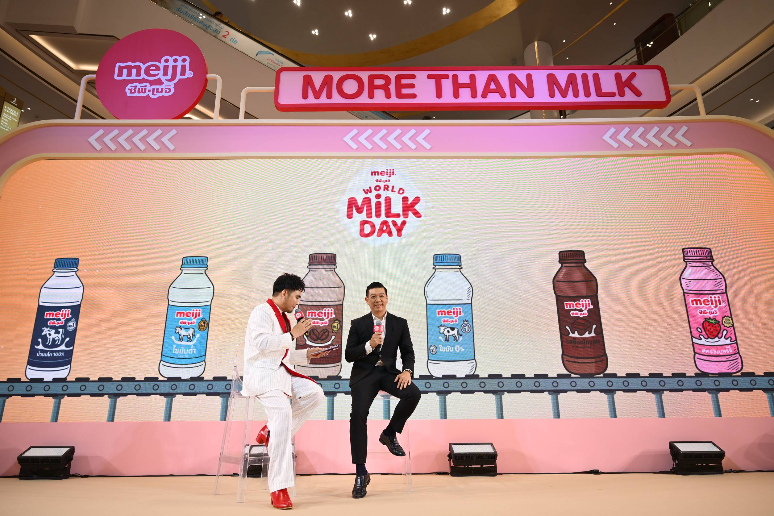 วันดื่มนมโลกปีนี้ CP-Meiji จึงตอกย้ำความเป็นผู้นำด้านนวัตกรรมผลิตภัณฑ์นม ผ่านงาน Meiji More Than Milk ให้ผู้บริโภคได้มาสัมผัสกับผลิตภัณฑ์นมแห่งอนาคตในรูปแบบที่สร้างสรรค์กว่าที่เคย เช่น Meiji Clear Milk นมที่ใช้นวัตกรรมมาทำให้นมมีเนื้อใส ไม่มีสี ไม่มีกลิ่น แต่ยังคงประโยชน์ของนมอย่างโปรตีน แคลเซียมแร่ธาตุต่าง ๆ ไว้ได้ โดยนำเสนอในรูปแบบเครื่องดื่ม ที่อร่อย สดชื่น ทานได้ง่ายแต่ได้ประโยชน์จากนม ช่วยให้คนที่ไม่ชอบดื่มนมดื่มได้ง่ายขึ้น นอกจากนี้ ยังมีเมนูพิเศษที่รังสรรค์จากผลิตภัณฑ์ CP-Meiji อย่างบานอฟฟีมิล์ค นมเมจิรสกล้วยมาผสมกับนมเมจิรสกาแฟ ได้นมรสชาติใหม่ที่อร่อย สนุก ครีเอทกว่าที่เคย สามารถนำไปทำเองได้ง่าย ๆ ที่บ้าน เพื่อให้ผู้บริโภคได้รับประสบการณ์ความอร่อยที่มาพร้อมประโยชน์ผ่านผลิตภัณฑ์ของซีพี-เมจิ ที่พัฒนามาเพื่อตอบโจทย์ทุกไลฟ์สไตล์ของผู้บริโภคให้ลงตัว