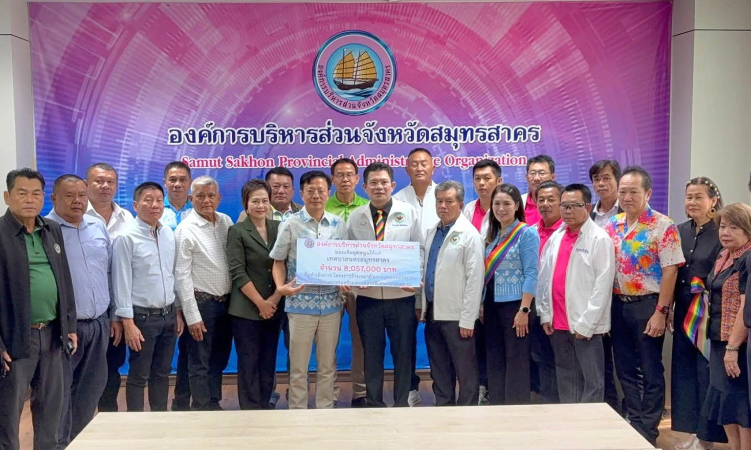 ผู้สื่อข่าวรายงานว่า นายอุดม ไกรวัตนุสสรณ์ นายกองค์การบริหารส่วนจังหวัดสมุทรสาคร ได้มอบเงินอุดหนุนให้แก่เทศบาลนครสมุทรสาคร เป็นจำนวนเงิน 8,057,000 บาท ใช้ในงานดำเนินการตาม "โครงการจ้างเหมาด้านโยกย้ายแนวท่อส่งน้ำประปาในเขตดูแล โดยมีนาย ชุมพล จันทร์จรัสวัฒนา นายกเทศมนตรีนครสมุทรสาคร เป็นผู้รับมอบฯ เงินช่วยอุดหนุนตามจำนวนดังกล่าว เพื่อแก้ไขปัญหาเส้นแนวท่อประปาของเดิมที่มีอยู่ซึ่งเข้าไปอยู่ในเขตแนวของงาน โครงการก่อสร้างทางหลวงพิเศษหมายเลข 82 สายทางยกระดับบางขุนเทียน-บ้านแพ้ว ช่วงเอกชัย-บ้านแพ้ว (ตอนที่6) ทั้งนี้โดยนาย ชุมพล นายกเทศมนตรีฯ ระบุสำหรับในส่วนของการคิดทำโครงการย้ายท่อดังกล่าวนี้ ต้องมีค่าช้จ่ายอยู่ประมาณกว่า 10 ล้านบาท อย่างไรก็ตามทางเทศบาลสมุทรสาคร จะได้หางบมาเพิ่อเติมอยู่เงินจำนวน 2,686,000 บาทเพื่อให้ได้เป็นไปตามเป้าต่อไป
