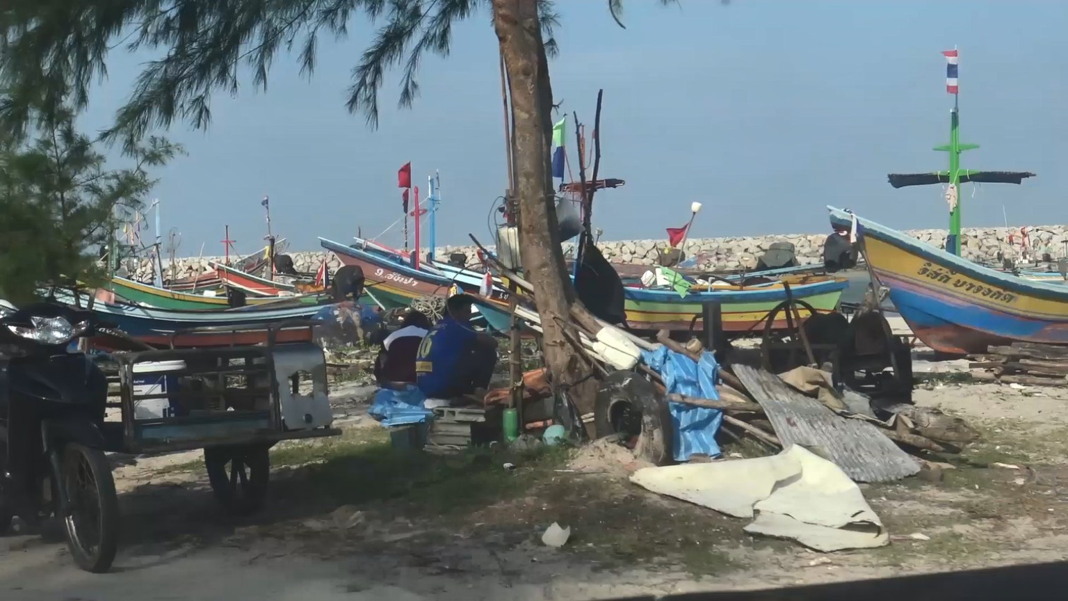 ที่บริเวณชายหาดบ้านบ่ออิฐ ต.เกาะแต้ว อ.เมือง จ.สงขลา ชาวประมงพื้นบ้านบ้านบ่ออิฐนำเรือออกไปทำการประมงวางอวนจับปลาหลายสิบลำตามปรกติ โดยนำเรือออกทำการประมงใกล้ฝั่งประมาณ 3-4 กิโลเมตรไม่กล้าออกไปไกล และรวมกลุ่มกัน หากเกิดปัญหาขึ้นก็จะได้ช่วยเหลือกันได้ทัน เนื่องจากภาคใต้ฝั่งตะวันออกห่างฝั่ง ยังคงมีคลื่นลม