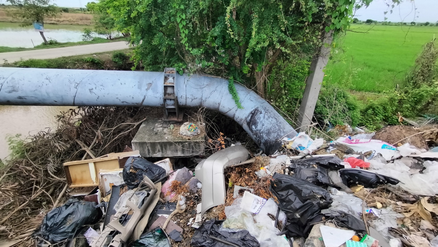 เน่าตลอดสาย ภาพบาดตาสวนทางความเจริญของพื้นที่ ทั้งขยะสิ่งปฏิกูลและกากอุตสาหกรรมถูกคนไร้สามัญสำนึกลอบนำมาทิ้งเกลื่อนเลียบถนนมอเตอร์เวย์ สาย 7 ช่วงตอนท่าสะอ้าน-บางวัว บางจุดส่งกลิ่นเหม็นคล้ายของเสียจากรถดูดส้วม บางจุดมีฟองคราบไขเป็นชั้นหนาทึบคล้ายกากอุตสาหกรรม บางจุดเป็นที่ทิ้งสารพัดขยะกองโต จ่อไหลลงสู่แหล่งน้ำธรรมชาติ