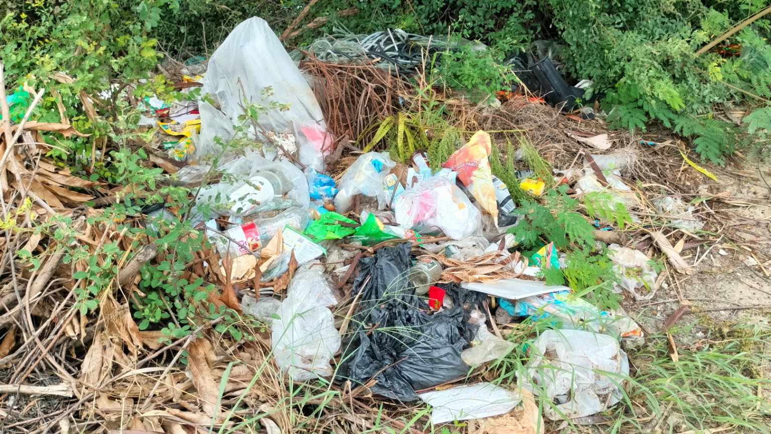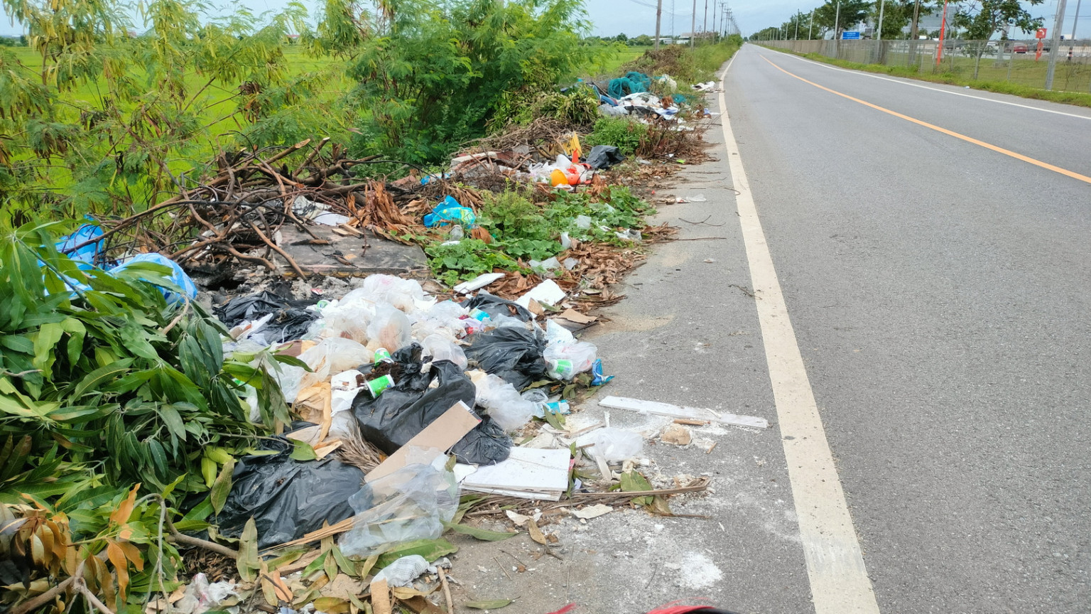 ขณะที่ริมถนนเลียบมอเตอร์เวย์ด้านฝั่งขาเข้านั้น มีลักษณะของการแอบลักลอบน้ำกากน้ำของเสียมาทิ้งเอาไว้เป็นหย่อมๆ เช่นเดียวกัน และยังมีกองขยะขนาดมหีมา และกองขยะเรี่ยราดอีกหลายจุด ซึ่งส่วนใหญ่เป็นของเหลือใช้ ชิ้นส่วนรถยนต์ มุ้งตาข่ายไนล่อนรวมถึงขยะเหลือใช้นาๆ ชนิด ตลอดจนเศษกิ่งไม้ใบไม้จากบ้านเรือนตามหมู่บ้านจัดสรร ที่ถูกตัดออกนำมากองทิ้งไว้เรียงรายไปตลอดเส้นทางเป็นจำนวนมาก ขัดแย้งกับความเจริญในพื้นที่