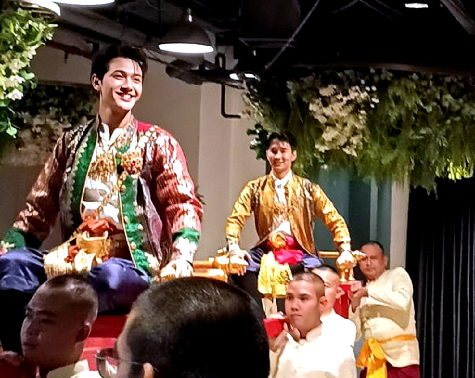 การปรากฏตัวของทั้งคู่เรียกเสียงฮือฮาจากแฟนคลับ แขกภายในงาน ด้วยขบวนเสลี่ยง พร้อมนางรำ และเครื่องแต่งกายชุดไทยพีเรียดสุดวิจิตร ที่สื่อถึงความงดงามและอัตลักษณ์ของวัฒนธรรมไทยได้อย่างน่าประทับใจ โดยเฉพาะ ชุดไทยและเครื่องประดับที่ออกแบบและตัดเย็บขึ้นเป็นพิเศษโดย จากห้องเสื้อ “ปัตบ้านผม” ซึ่งถ่ายทอดความวิจิตรบรรจงและเอกลักษณ์ไทยได้อย่างโดดเด่น