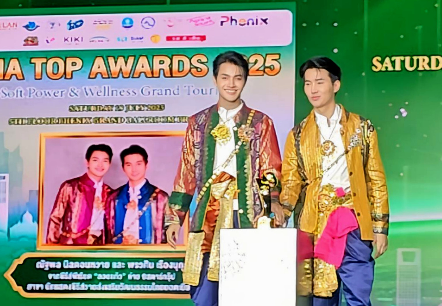 ในงาน Asia Top Awards 2025 ที่จัดขึ้นอย่างยิ่งใหญ่ ณ ห้องบอลรูม Phenix Grand Ballroom ประตูน้ำ เมื่อวันที่ 19 กรกฎาคม 2568 ภายใต้คอนเซ็ปต์ “Soft Power & Wellness Grand Tourism” สองนักแสดงนำจากซีรีส์วายพีเรียดสุดฮิต “ลอยแก้ว First Love” ได้แก่ ณัฐพล นิลดอนหวาย (เล้ง) และ พรวศิน เรืองนุกูล (แสตมป์) ได้รับรางวัลอันทรงเกียรติ “นักแสดงซีรีส์วายส่งเสริมวัฒนธรรมไทยยอดเยี่ยม”