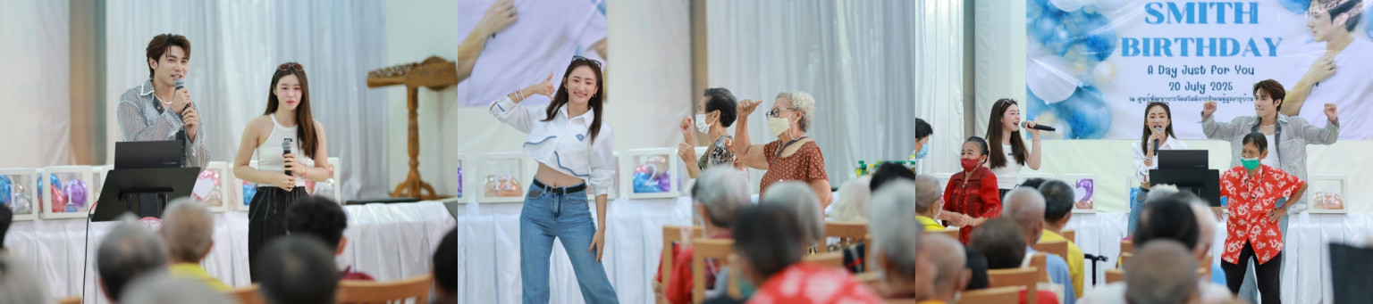 งานนี้ไม่ใช่แค่เพียงการฉลองวันเกิดทั่วไป แต่เป็นการส่งต่อความสุขจากหัวใจถึงหัวใจให้กับผู้สูงอายุ บรรยากาศภายในงานเต็มไปด้วยความรอยยิ้มและเสียงหัวเราะทั้งจากเจ้าของวันเกิด และแฟนคลับ ที่ร่วมกันจัดกิจกรรมความสุขที่หลากหลาย ไม่ว่าจะเป็นการนำของใช้จำเป็นไปมอบให้ การจัดเลี้ยงอาหารกลางวันแสนอร่อย รงมถึงการร่วมกิจกรรมสันทนาการ พูดคุย ร้องเพลง สร้างความสดใสและความคึกคักกับผู้สูงอายุได้เป็นอย่างดี ความพิเศษของงานนี้ยังอยู่ที่การรวมตัวของเพื่อนสนิทอย่าง กลัฟ คณาวุฒิ, จูเนียร์ กาจบัญฑิต, แบม สราลี, เนเน่ ธันย์ชนก และ เฟิร์ส เอกพงศ์ ที่ไม่ได้มาแค่ให้กำลังใจสมิธ แต่ยังร่วมแบ่งปันความสุขด้วยการนำก๋วยเตี๋ยวเรือลำพายรสเด็ดมาเลี้ยงผู้สูงวัยและแฟนคลับ ก่อนปิดท้ายด้วยช่วงเวลาพิเศษที่สมิธพูดคุยขอบคุณแฟนคลับด้วยรอยยิ้มจากหัวใจ
