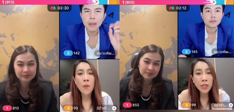 ด้าน อีป้าฯ ถามว่า “คุยกันคงไม่ใจอ่อน หนูกับทนายพัฒน์ต้องมา (ทำเสียงหอน)” แม่จูน ตอบเลยว่า “ไม่มี ฝนกำลังตกอยู่ สาบานต่อสิ่งศักดิ์สิทธิ์ ไม่มี ไม่มี บอกไม่มีก็คือไม่มี ”