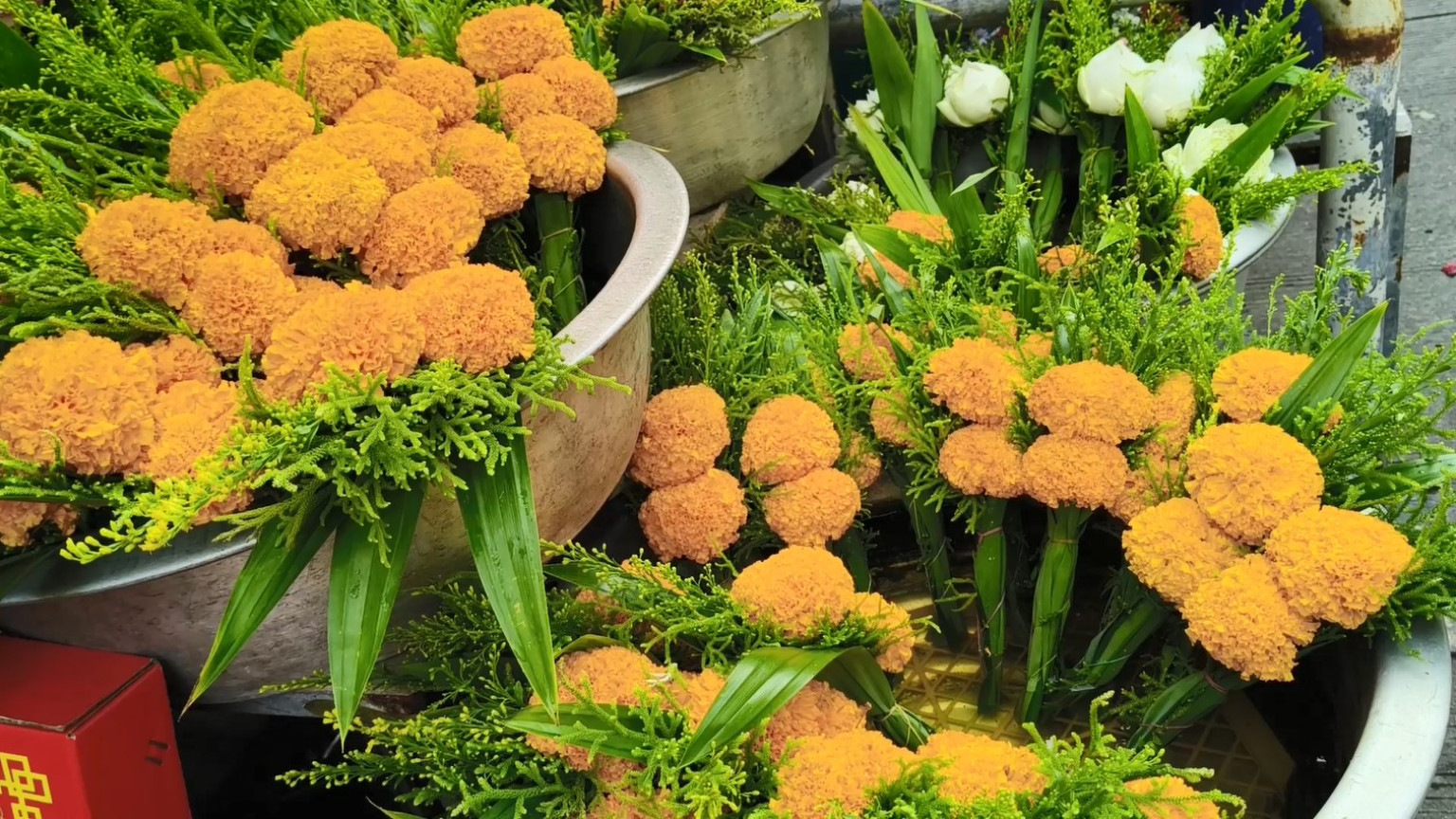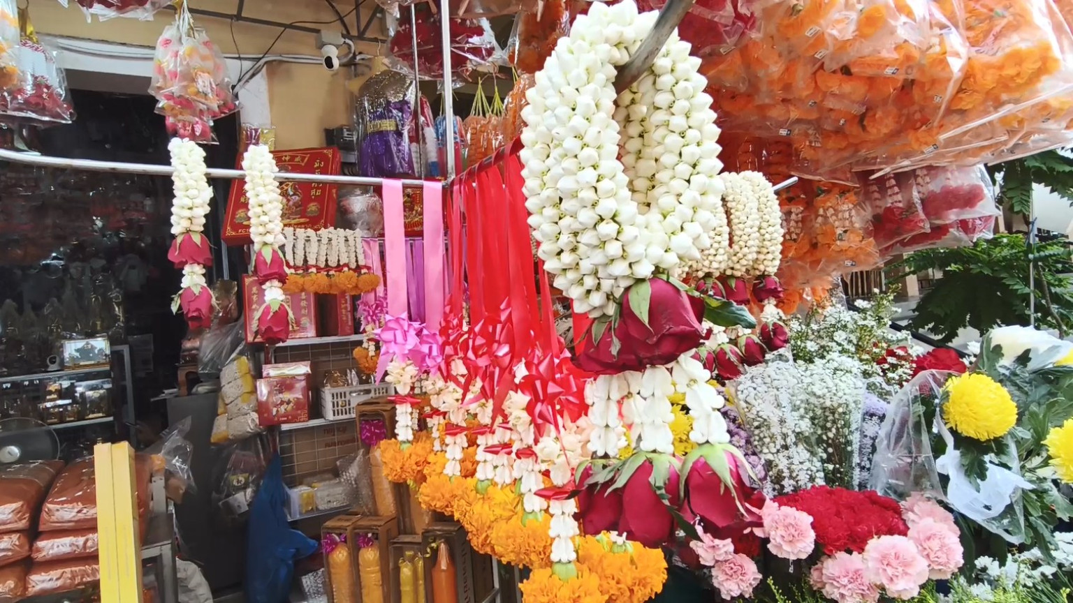 อย่างเช่น ดอกดาวเรืองดอกเดียวช่อละ 5 บาท หาก 2 ดอก ช่อละ 10 บาทช่อ 4 ดอก 20 บาท ดอกกล้วยไม้ ช่อละ 10 บาท สำหรับดอกเบญจมาศดอกใหญ่ ดอกละ 20 บาท ดอกเล็ก 10 บาท ในส่วนของดอกบัวหากซื้อเป็นดอก ราคาดอกละ 10 บาท และที่ทำเป็นช่อแล้วช่อละ 15 บาท ทำให้ราคาดอกบัว และดอกไม้ยังราคาปกติ