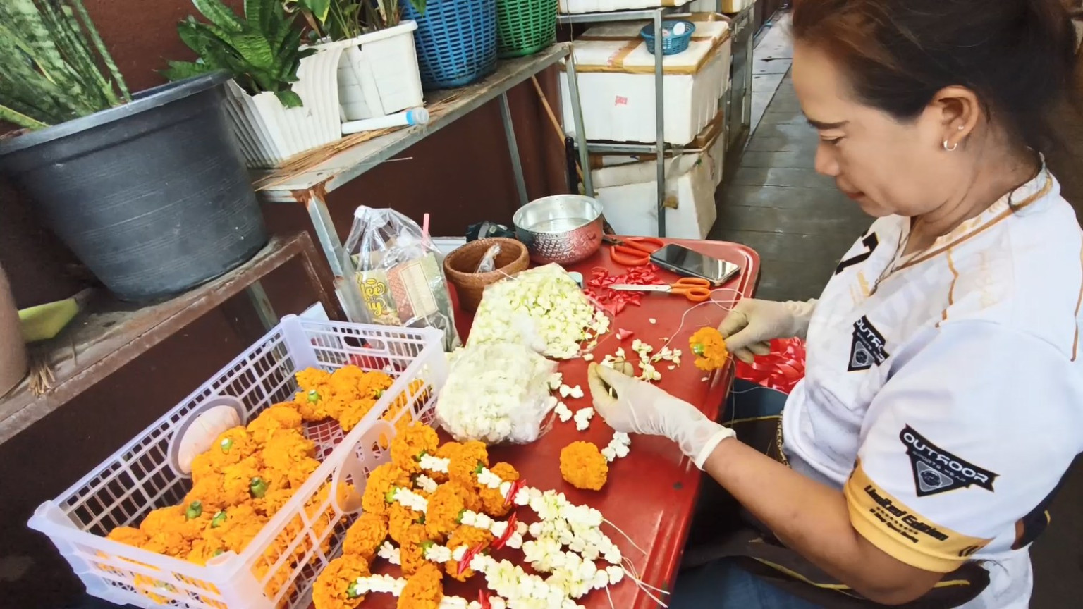 นางวรรณี ช่างทอง เจ้าของร้านดอกไม้กุ๊ก กล่าวว่า ตอนนี้ดอกดาวเรืองที่สั่งจากกรุงเทพฯราคาแพงมากเลย ที่สงขลาบ้านเรามีไม่เยอะมีนิดๆหน่อยๆ ส่วนดอกบัว ที่สงขลามี เป็นดอกบัวบ้านสั่งจากนาบัวที่อำเภอสิงหนคร จังหวัดสงขลา ราคาปกติไม่แพง ดาวเรืองกรุงเทพฯแพงมาก ทางร้านสั่งมาไม่เยอะ เมื่อหมดแล้วก็สั่งใหม่ ในช่วงวันอาสาฬหบูชาก็สั่งดอกดาวเรือง เฉพาะที่ลูกค้าสั่ง เพราะของมันแพง สำหรับที่ร้านที่จัดดอกดาวเรืองเป็นช่อก็ยังคงขายราคาปกติ ราคาเดิม ช่อละ 10 บาท 20 บาท ขายราคาเดิม