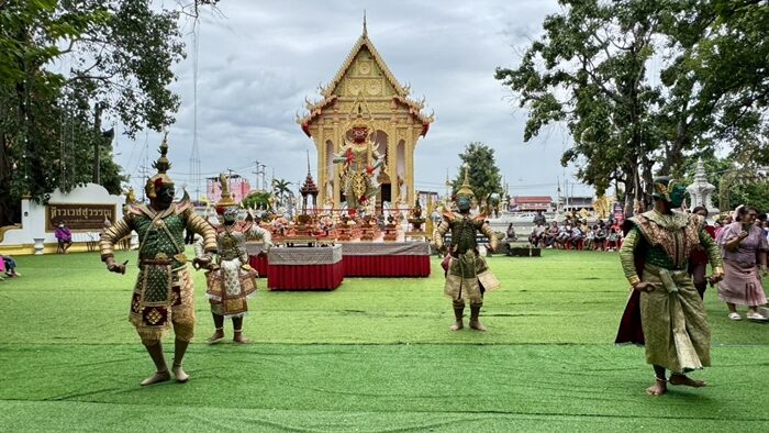 จากนั้น พระมหาอภิชาติ กิตติวรัญญู เจ้าอาวาสวัดทุ่งสนุ่นรัตนาราม ได้ทำการจุดเทียนชัยบวงสรวง ก่อนจะมีการรำถวายมือและการแสดงโขนยักษ์หน้าพิธี ขณะเดียวกันได้มีการทำน้ำมนต์หยดลงในขันต์
