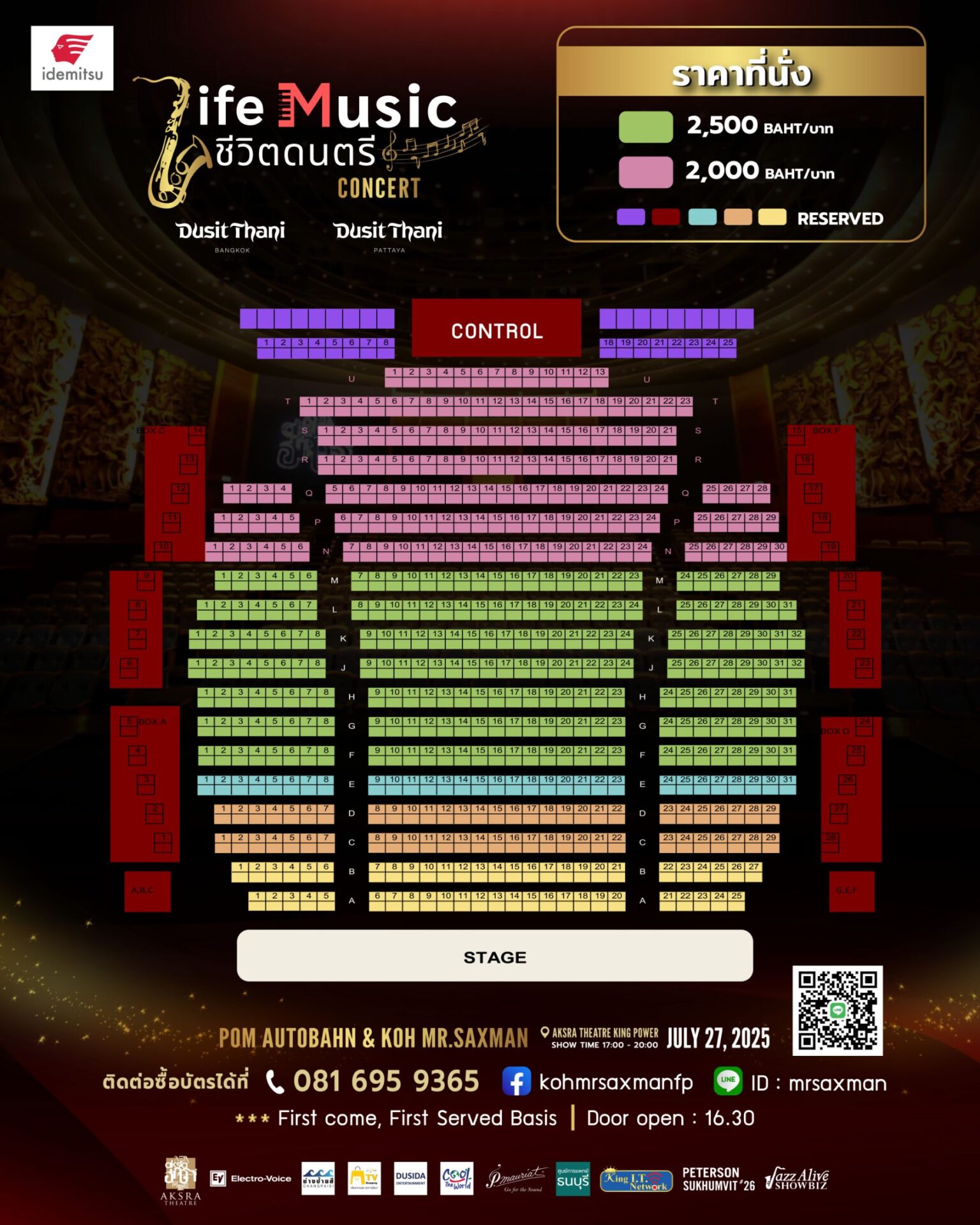 คอนเสิร์ต “CONCERT : LIFE MUSIC / ชีวิตดนตรี” การโคจรมาพบกันของสองศิลปินคุณภาพแห่งวงการเพลงไทย “ป้อม ออโต้บาห์น” และ “โก้ มิสเตอร์แซกแมน” ที่จะมาร้อยเรียงบทเพลงจากประสบการณ์ชีวิตและถ่ายทอดเรื่องราวดนตรีที่อยู่ในหัวใจของแฟนเพลงมายาวนาน สอบถาม/จองบัตรได้ที่ 081-6959365 Facebook @kohmrsaxmanfp และ ID: mrsaxma บัตรราคา 2,500 บาท และ 2,000 บาท จำหน่ายแบบ First Come, First Served Basis มาก่อนเลือกที่นั่งตามโซนราคาที่กำหนดได้ตามอัธยาศัย