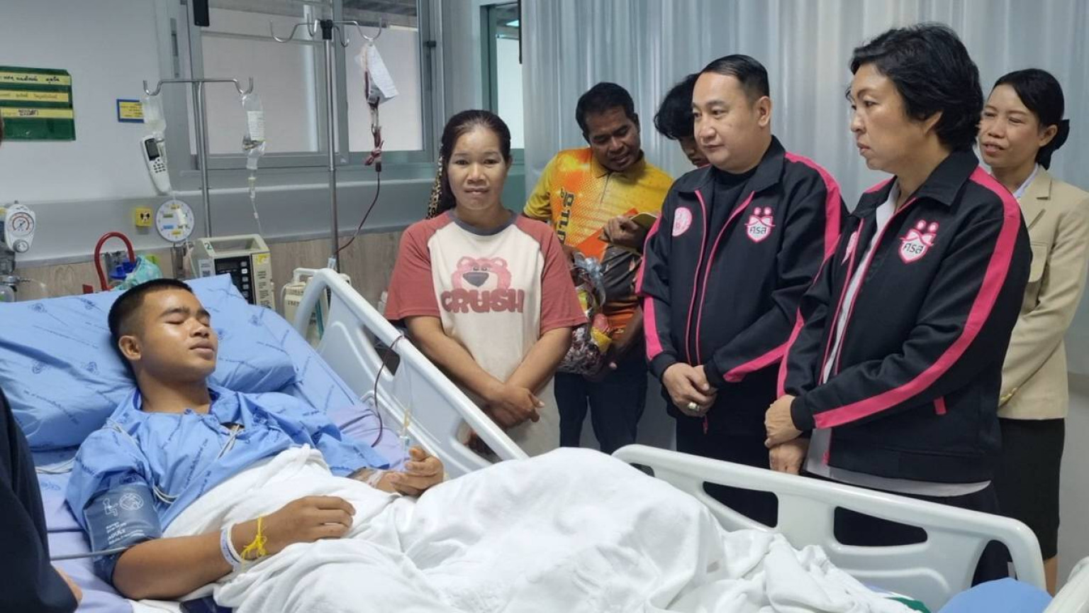 ที่หอผู้ป่วย ไอซียู โรงพยาบาลค่ายสรรพสิทธิประสงค์ (สัน-พะ-สิด-ทิ-ประ-สงค์) อำเภอวารินชำราบ จังหวัดอุบลราชธานี นางสาวแรมรุ้ง วรวัธ อธิบดีกรมกิจการสตรีและสถาบันครอบครัว กระทรวงการพัฒนาสังคมและความมั่นคงของมนุษย์ ( พม.) ได้มอบหมายให้ ผศ.ดร.พนธ์พันธ์ เลิศจันทรางกูร ที่ปรึกษาฯ พร้อมด้วย นางสาวจุรีพร ภิบาลจันทร์ ผู้อำนวยการศูนย์เรียนรู้การพัฒนาสตรีและครอบครัวภาคตะวันออกเฉียงเหนือจังหวัดศรีสะเกษ และ คณะนำกระเช้า ผลไม้ นม บำรุงร่างกาย และ เงิน เข้าเยี่ยมสร้างขวัญให้กำลังใจ มอบให้กับทหารทั้ง 3 นาย ที่ได้รับบาดเจ็บ จากการเหยียบกับระเบิด ขณะออกลาดตระเวนที่เนิน 481 ชายแดนไทย บริเวณช่องบก พร้อมพูดคุยถามไถ่อาการ กับ ทหารทั้ง 3 นาย ,ญาติพี่น้อง ,แพทย์ พยาบาล ที่ดูแล โดย ทหารทั้ง 3 นาย ประกอบด้วย พลทหาร ธนพัฒน์ หุยวัน ได้รับบาดเจ็บสาหัส ข้อเท้าซ้ายขาด , พลทหาร ณัฐวุฒิ ศรีเข้ม และ สิบเอก ปฏิพัทธิ์ ศรีลาศักดิ์ มีอาการแน่นหน้าอก ปัจจุบันอาการดีขึ้น ตามลำดับ