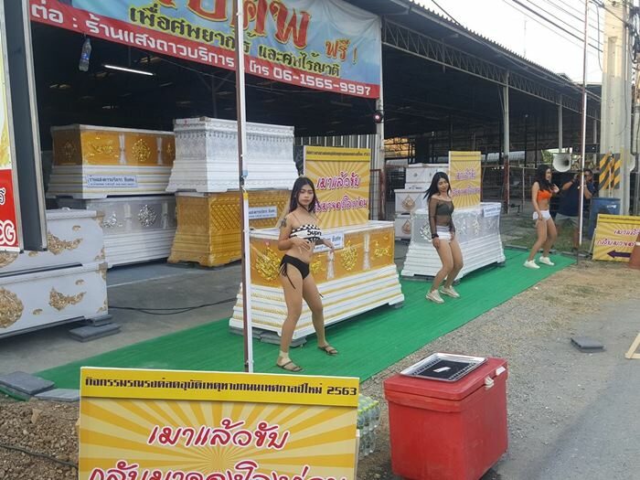 หนุ่มเจ้าของร้านโลงศพเปิดแรงบันดาลใจทำป้ายโฆษณาวางข้างป้ายผู้สมัคร อบต.ชูสโลแกนขอรับใช้คนที่คุณรักในวาระสุดท้าย โดนสั่งรื้อเพราะติดใกล้ผู้สมัคร อบต.กลัวไม่เป็นมงคล
