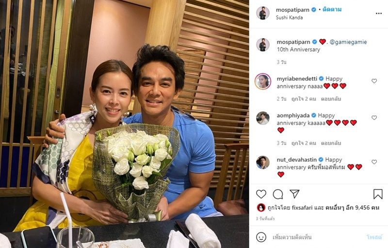 รักมั่นคงยาวนานมาก มอส ปฏิภาณ โพสต์ครบรอบแต่งงาน 10 ปี กับ เกม ภรรยา มีลูกสาวพยานรัก 2 คน น้องโสน และ น้องสวรรค์ ความรักยังหวานไม่เปลี่ยน โดยเผยภาพไปฉลองวันครบรอบแต่งงานสุดหวานด้วยกัน
