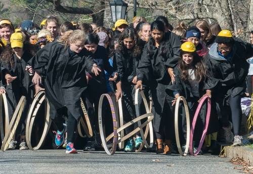 3. แข่งขันกลิ้งห่วงไม้ Wellesley College รัฐแมสซาชูเซตส์ ที่ประเทศสหรัฐอเมริกา ได้จัดกิจกรรมแข่งขันกลิ้งห่วงไม้ในวันพิธีรับปริญญา การแข่งขันกลิ้งห่วงไม้ที่ตกแต่งอย่างสวยงามไปที่ทะเลสาบวาบาน โดยผู้ชนะการแข่งขันจะถูกโยนลงน้ำ เหตุที่ต้องโยนผู้ชนะลงน้ำนั้นก็เพราะเชื่อว่าเคยมีนักศึกษาจากHarvard University ปลอมตัวมาแข่งและชนะ แต่เมื่อถูกจับได้ เขาจึงถูกโยนลงไปในทะเลสาบเพื่อเป็นการลงโทษ