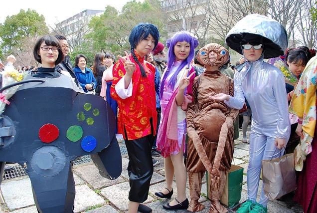 4. แต่งคอสเพลย์สุดแหวกแนว Kanazawa College of Art ที่เมืองเกียวโต ประเทศญี่ปุ่น ที่ทางมหาวิทยาลัยอนุญาตให้นักศึกษาครีเอทชุดแฟนซีได้ตามใจชอบ โดยพิธิรับปริญญาบัตรของมหาวิทยาลัยเกียวโตนั้น ได้สร้างสีสันให้กับชาวเน็ตมาเป็นเวลาตลอดหลายปี