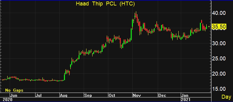 ผู้สื่อข่าวรายงานว่า ราคาหุ้น บริษัท หาดทิพย์ จำกัด (มหาชน) หรือ HTC ล่าสุด ณ เวลา 11.48 น.อยู่ที่ 35.50 บาท บวก 1 บาท หรือ 2.90% สูงสุดที่ 35.25 บาท ต่ำสุดที่ 34.75 บาท ด้วยมูลค่าซื้อขาย 21.06 ล้านบาท