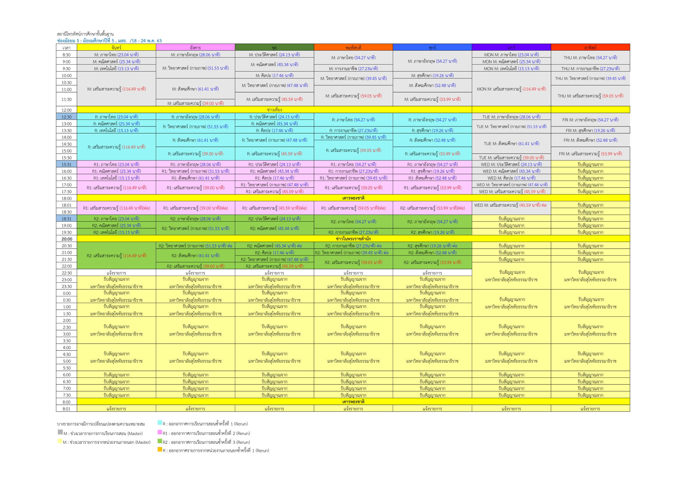 ม.5 สอนผ่านช่อง DLTV 14 ทีวิจิทัลช่อง 50 ทีวีดาวเทียม KU-Band (จานทึบ) ช่อง 199 ทีวีดาวเทียม C-Band (จานโปร่ง) ช่อง